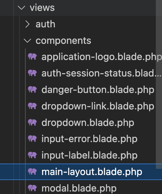 Blade Components では、各コンポーネントでレイアウトを x-レイアウト名-layout